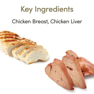 Chicken breast (40%), chicken liver (2%), potato starch, vegetable gelling agent, celery powder.