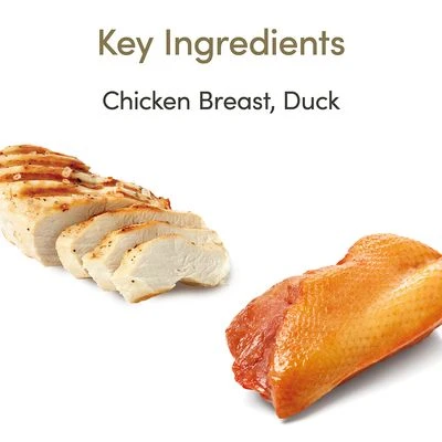 Chicken breast (40%), duck (5%), potato starch, vegetable gelling agent, celery powder.