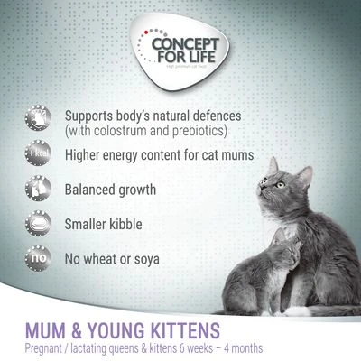 CONCEPT FOR LIFE Mum & Young Kittens – complete dry cat food specifically formulated for pregnant and lactating queens and young kittens aged 6 weeks to 4 months: