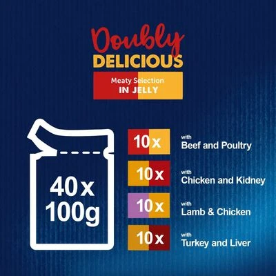 The Doubly Delicious Meaty Selection in Jelly contains the following varieties: