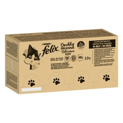 The innovative recipe offers an irresistible taste sensation for your cat β you wonβt be able to drag them away from their bowl at mealtimes!Β Each tasty meal comes in a practical stay-fresh pouch and combines two types of juicy meaty chunks with a flavour-rich jelly. Felix wet cat food contains all the nutrients your cat needs to stay happy, healthy and active. Felix As Good As It LooksΒ Doubly DeliciousΒ is rich in omega-6 fatty acids, as well as vitamins and minerals. Only the finest, quality-controlled ingredients go into the production of Felix As Good As it LooksΒ Doubly DeliciousΒ wet cat food.