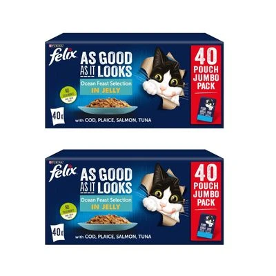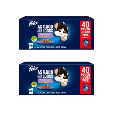 Felix As Good As It Looks really is as good as it looks! 4 different, delicious in jelly varieties in this 80 jumbo pack will keep your cat happy and content: