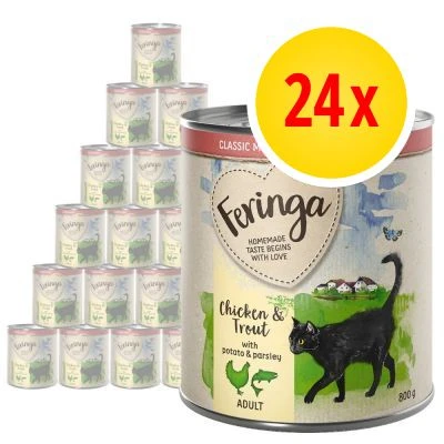 The Feringa Classic Meat Menu Multibuy 24 x 800g Mixed Pack contains 6 different varieties, so your cat can enjoy something different each day: