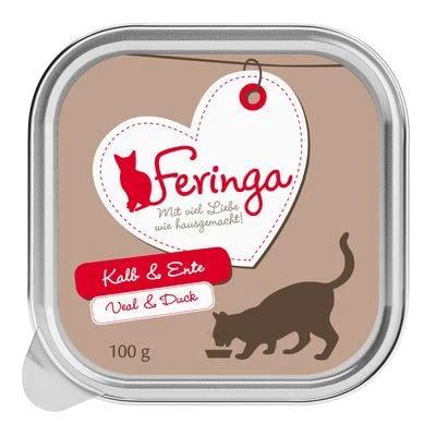 Feringa Trays Saver Pack 48 x 100g is a high-quality wet food, whose recipe offers natural nutrition for your feline. The thoughtful recipe contains high-quality protein combined with delicious vegetables and tasty herbs. The adapted vitamin and taurine content ensures your cat receives all of the key nutrients it needs, whilst the gentle preparation preserves natural flavour and nutritional value. The practical trays ensure that your cat can always enjoy the full taste experience. After eating, the empty tray can simply be disposed of, without any leftovers leaving unpleasant smells.