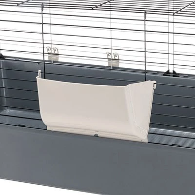 Ferplast Rabbit & Guinea Pig Cage 120 is a spacious cage for dwarf rabbits and guinea pigs. Delivery of the cage includes basic accessories such as a hay rack, a cup, a den and a non-drip bottle. There’s nothing that will go between you and your pet. The included hay/food rack hangs outside so it doesn’t take up extra space in the cage. To help you get to your pet easily, the Ferplast Rabbit 120 has a large metal door that opens from the top. The paint on the grating is water-based and cannot harm the animals.