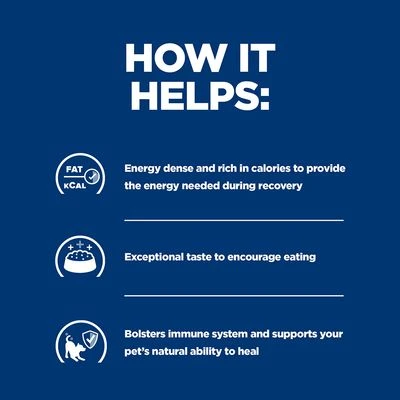 - Specifically developed to help your pet recover after surgery or following a bout of appetite loss or severe illness