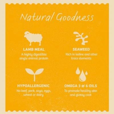 - Single source protein: with lamb as the only source of animal protein, to make it easier to digest