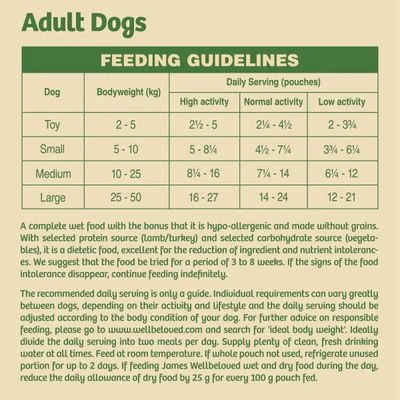 As with any James Wellbeloved dog food product, this James Wellbeloved Adult Grain Free Pouches – Variety Pack contains no added artificial colours, flavours or preservatives, as well as being free from beef, pork, soya, eggs, wheat and dairy.