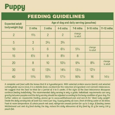 James Wellbeloved Pouches Lamb with Rice & Vegetable – Puppy & Junior at a glance: