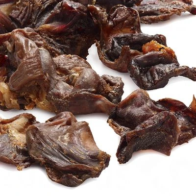 Dried chicken stomachs are a popular chew for large and small dogs. These tasty mono-protein snacks have a hearty taste and are rich in protein. They are free from artificial preservatives, aromas and colours.
