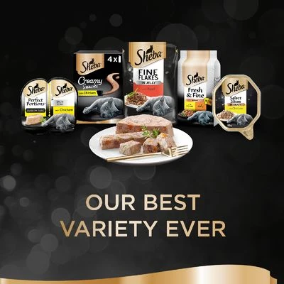 Sheba knows what cats like and Sheba Classics Terrine Trays are perfect for choosy cats, with lots of different varieties so your cat can look forward to something different every day. Whether your cat loves fish, meat or poultry, there is something to please every palate with these mouth-watering dishes. Made with delicious, top quality ingredients, your cat will love these tasty Sheba Classics Terrine Trays. Each one is a complete, balanced meal. The recipe is so delicious that there is no need for artificial taste enhancers, colourings or preservatives. And all available in practical portioned trays in an economical saver pack. Your cat will adore the natural, pure taste of Sheba Classics Terrine Trays.
